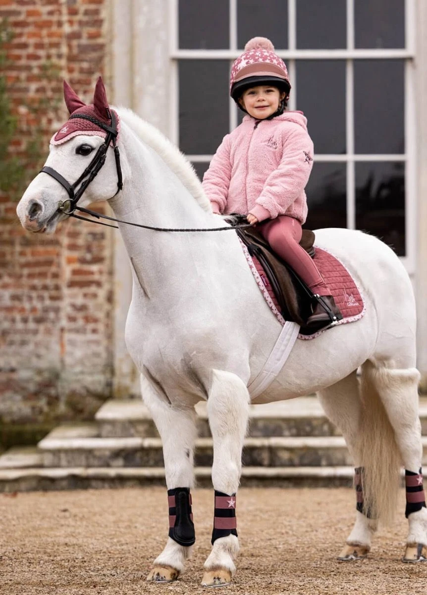 Mini LeMieux is intended to appeal to the under twelves with an eye for style. Sharing all the same technical spec as the main LeMieux saddle pads with 100% Natural Bamboo linings, high wither, strengthened girth protection areas and girth strap locking loops. These beautiful pads are made with a luxury suede top side and signature polka dot binding unique to the range. The Mini LeMieux collection is completed with small matching brushing boots and hand crocheted fly hood all designed particularly for 11.2hh to 13hh ponies